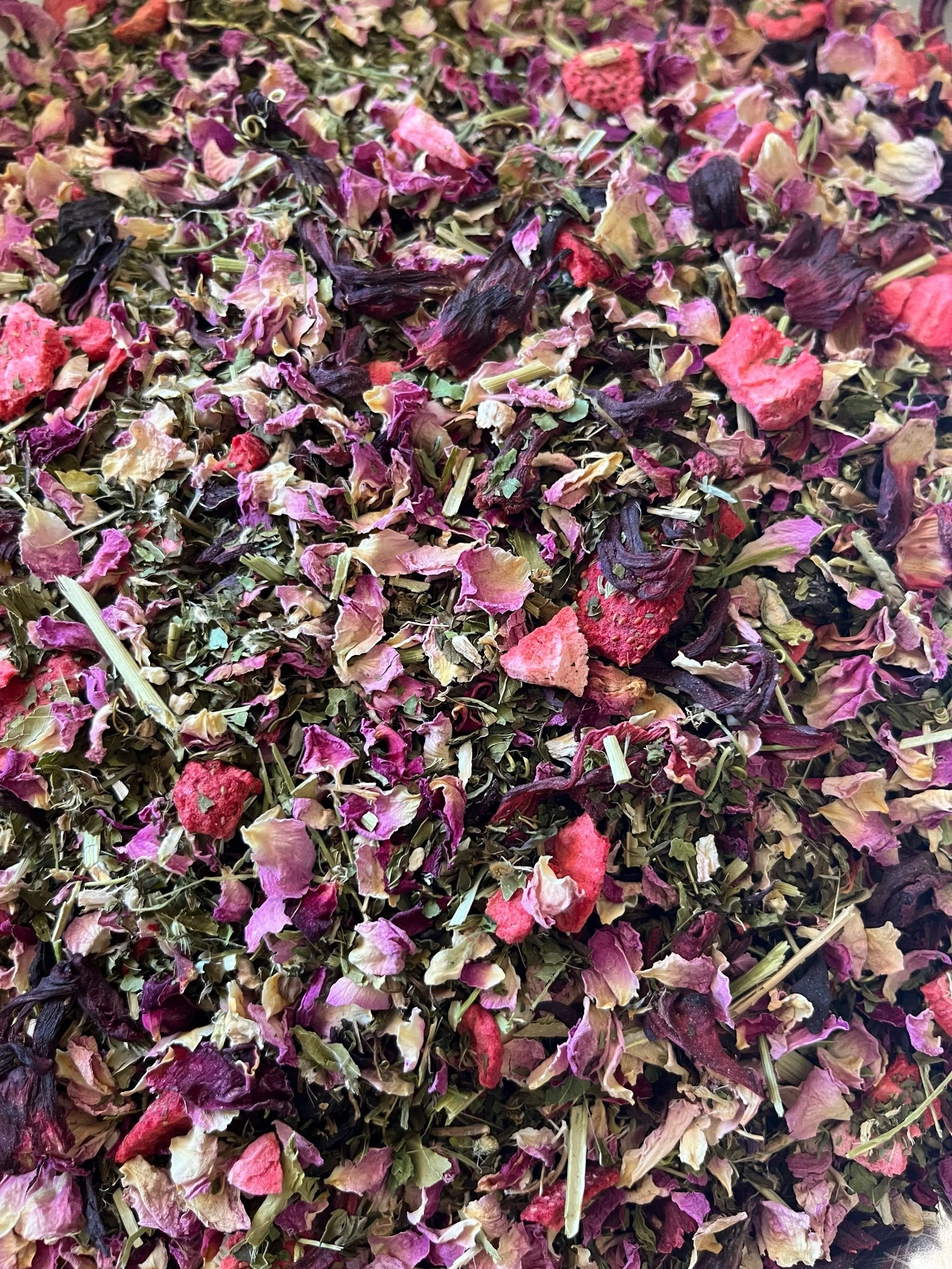 SOOTHE: roselle, spearmint, passion flower vine, marshmallow root, strawberry, damask rose (California grown)